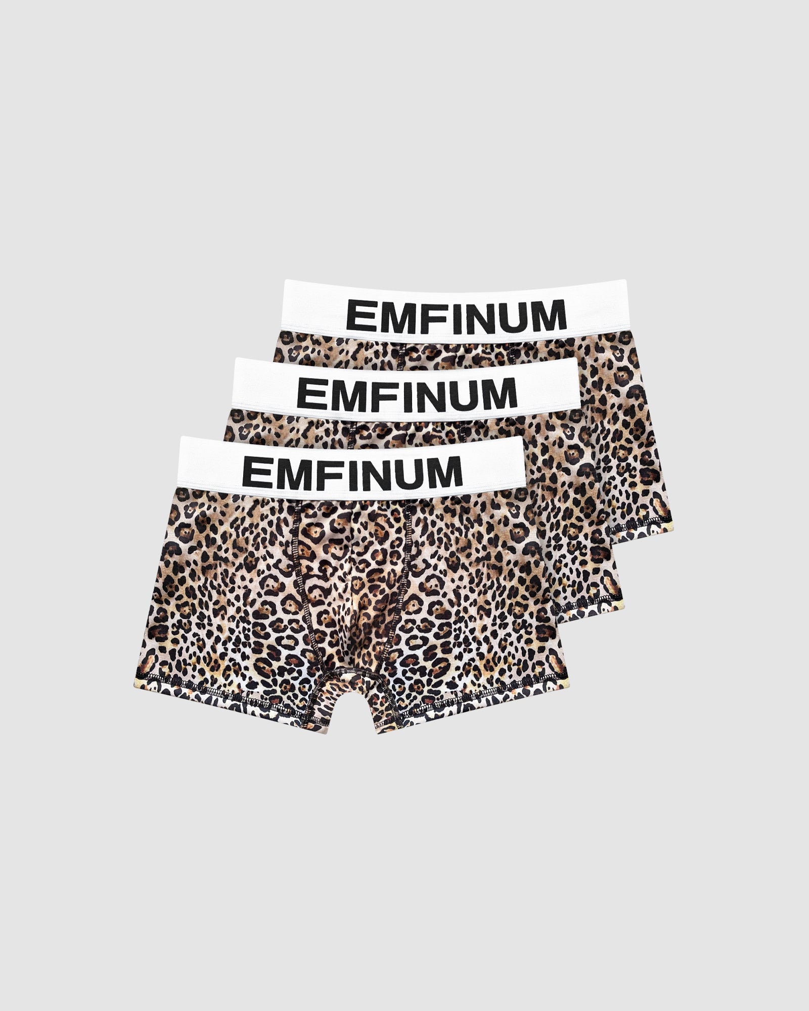 Designed with soft, breathable fabric for all-day comfort and an elasticated waistband featuring the EMFINUM logo. Pack of 3. All-over printed leo pattern.